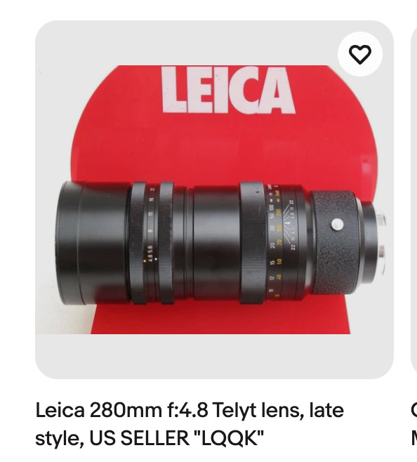 I also have a long standing love affair with this letter combination, because of its usage in early internet marketplaces, as in ebay, as in Leica 280mm f:4.8 Telyt lens, late style, US SELLER ”LQQK“.