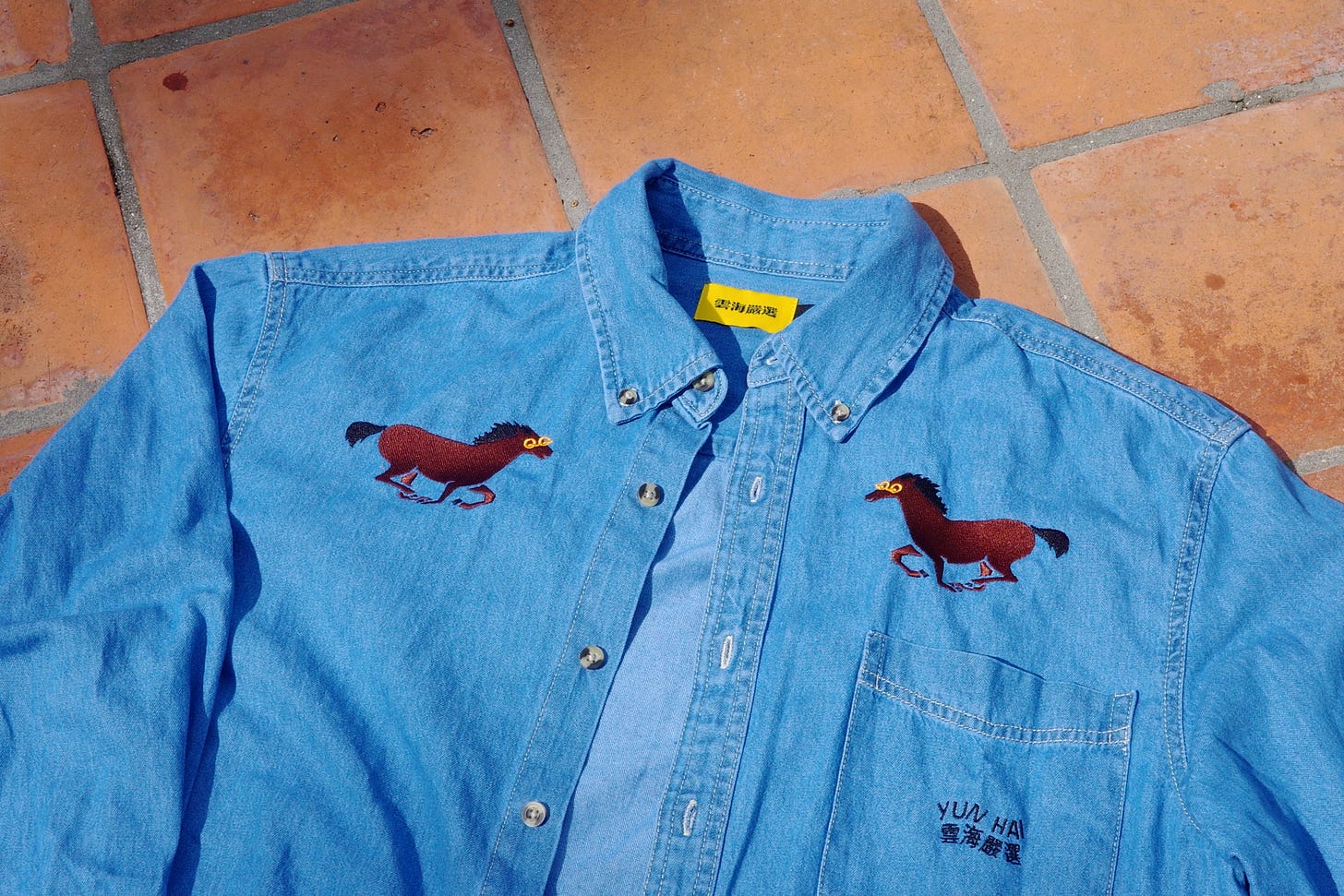 QQ Horse: Long Sleeve Denim Shirt
