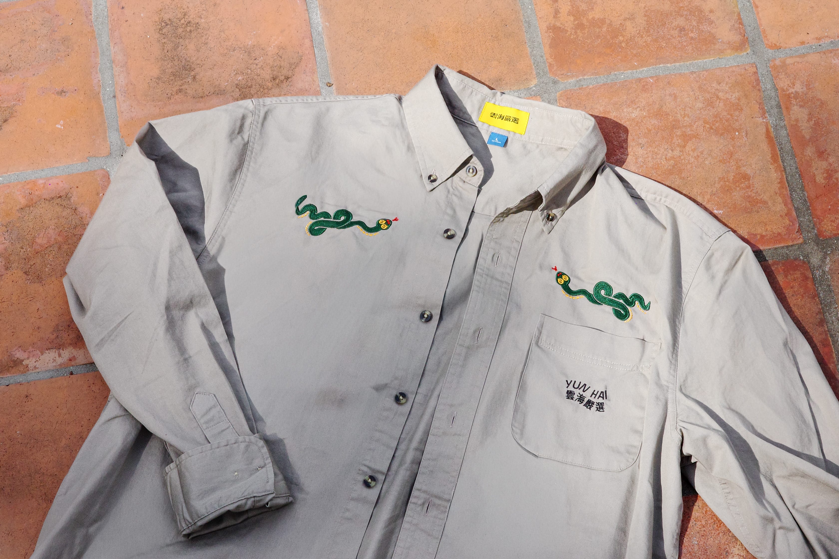 We put QQ Horse and QQ Snake on a new series, internally dubbed Zodiac Workwear, Practical Attire for Any Situation.™ The horse, fittingly, is emblazoned onto denim, and the snake onto khaki.