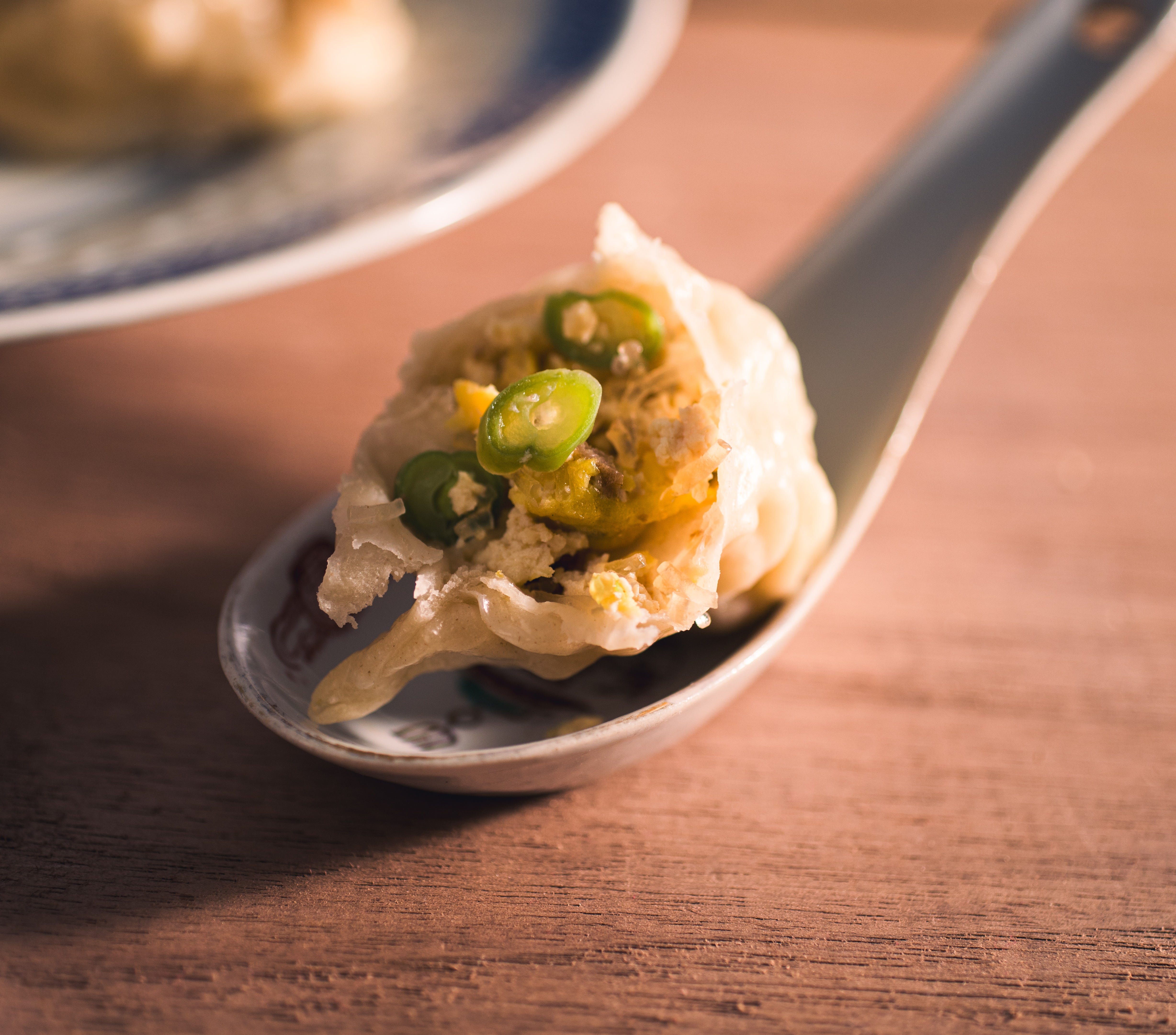 Bloom and Blossom Dumplings, a vegetarian number inspired by cai bo dan 菜脯蛋, or preserved radish omelet, a Hakka dish common throughout Taiwan.