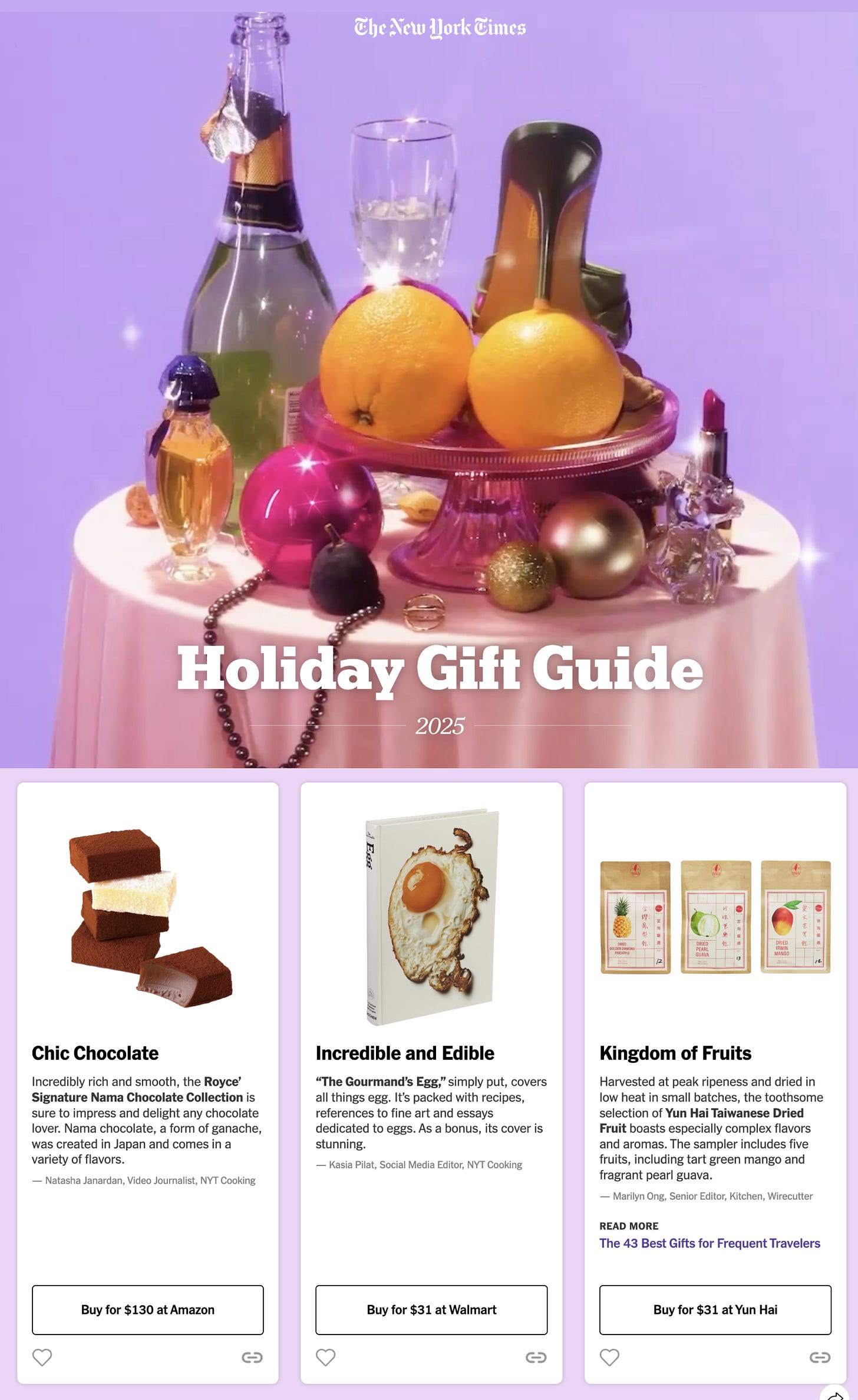 And finally, yes yes, it’s gift guide season. Thanks to the NY Times for the very high profile inclusion in their 2025 gift guide!! And Forbes for featuring our dried fruits as top of the list for the snackers in your life.