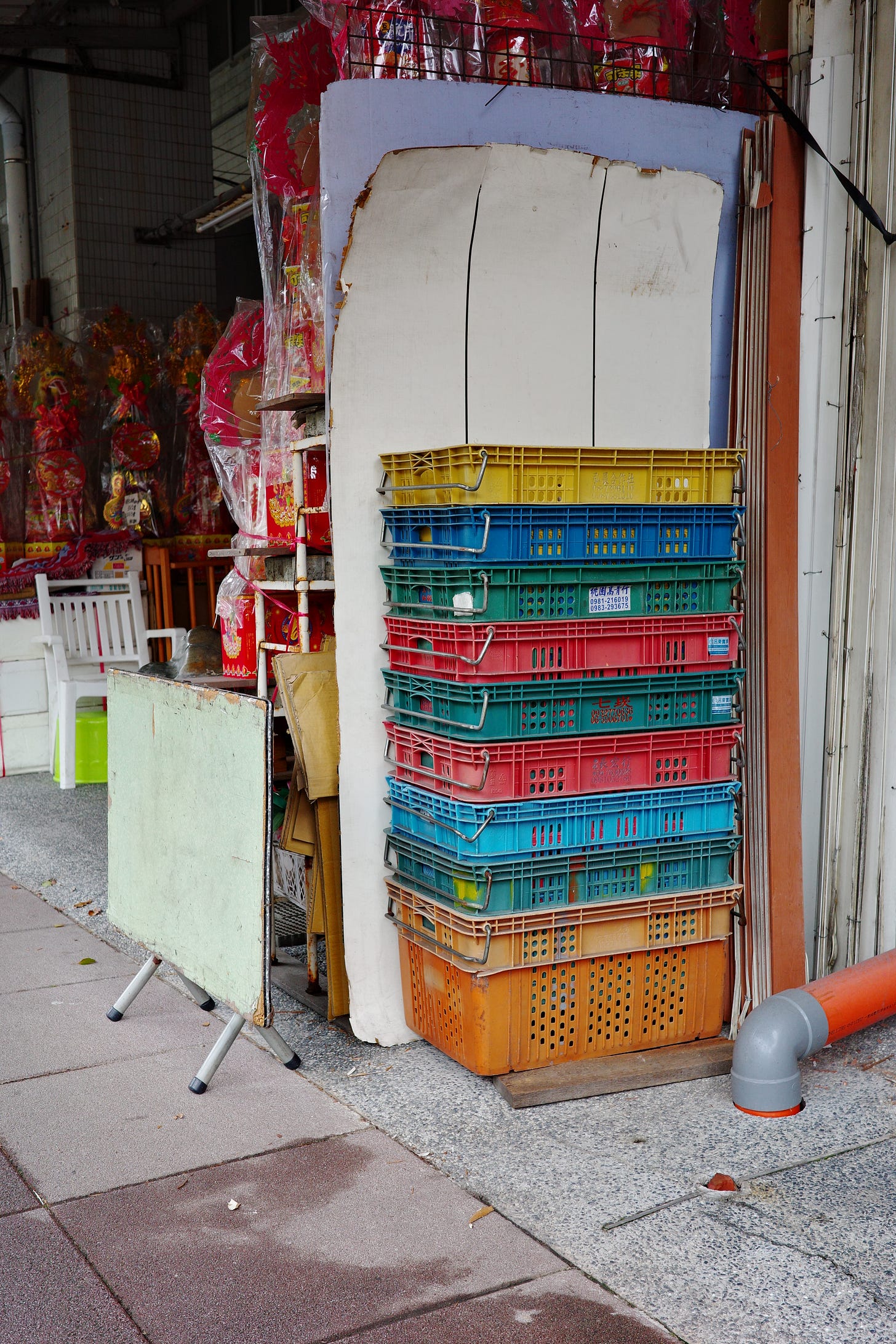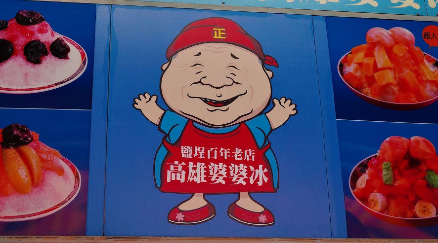 So, though this dessert is topped with a glossy, attention-grabbing flan, the real rarity here is the mulberry, harvested lovingly by hand from a darling fruiting tree, transported gently to avoid bruising, and appearing for just a very short time on the menu of this ABSOLUTELY DELIGHTFUL AND NOT TO BE MISSED ice shop near Kaohsiung’s City Harbor. While you’re there, don’t miss the tomato slices, dipped in soy paste and licorice, or the mung bean mash on top of almond bean curd. Also the perfect fruit stand I showed earlier is actually a sub-area of this Po Po Ice, so please go bask in that glow, too.