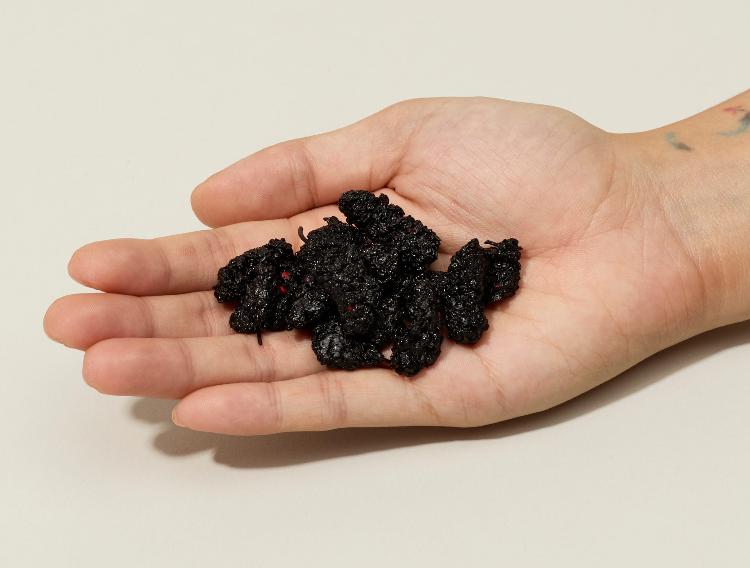 This dried fruit is incredibly unique, and not quite like anything I’ve had before. The mulberry flavor is rich and condensed, and with all the crunchy seeds, the texture is almost like a dried fig. Though we do add sugar to the fruit because it’s necessary to preserve them (mulberries don’t have enough sugar on their own), they are only lightly sweet, and the natural, almost savory, taste of the fruit shines through.