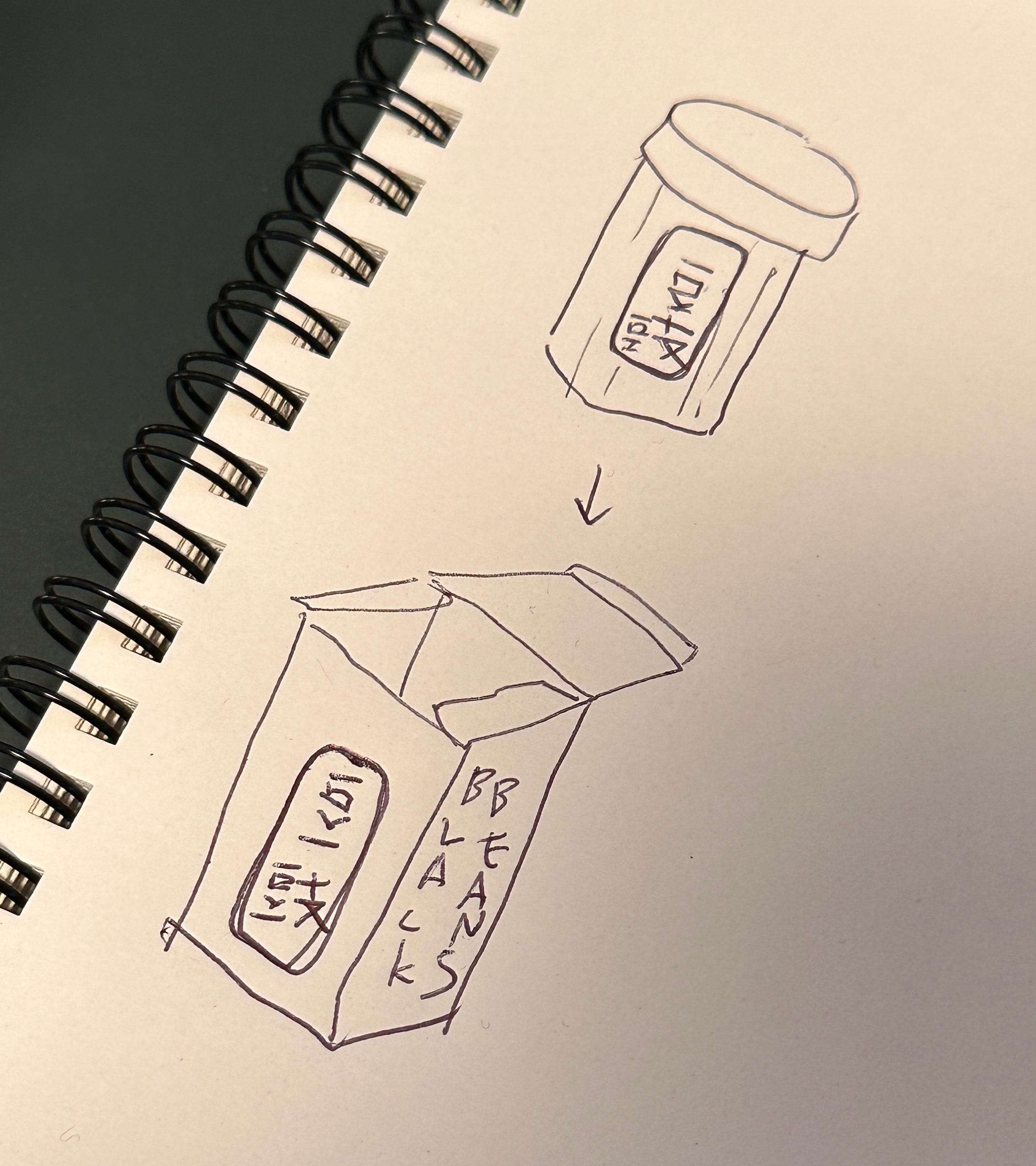 We decided to package the black beans into one of these jars and encase it in a lightweight box, which solved all of our problems. You can see through it (box has a window); it’s affordable; it channels Taiwan sensibility; it’s easy to fill; it’s not a headache for the vendors to get, and, as it turns out, it’s made of PET, one of the most widely accepted 100% recyclable plastics in use today.