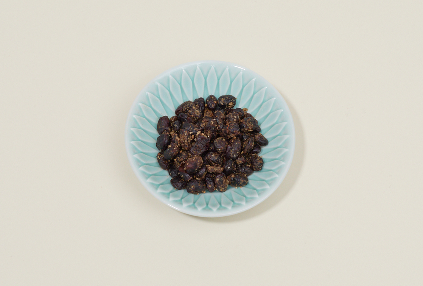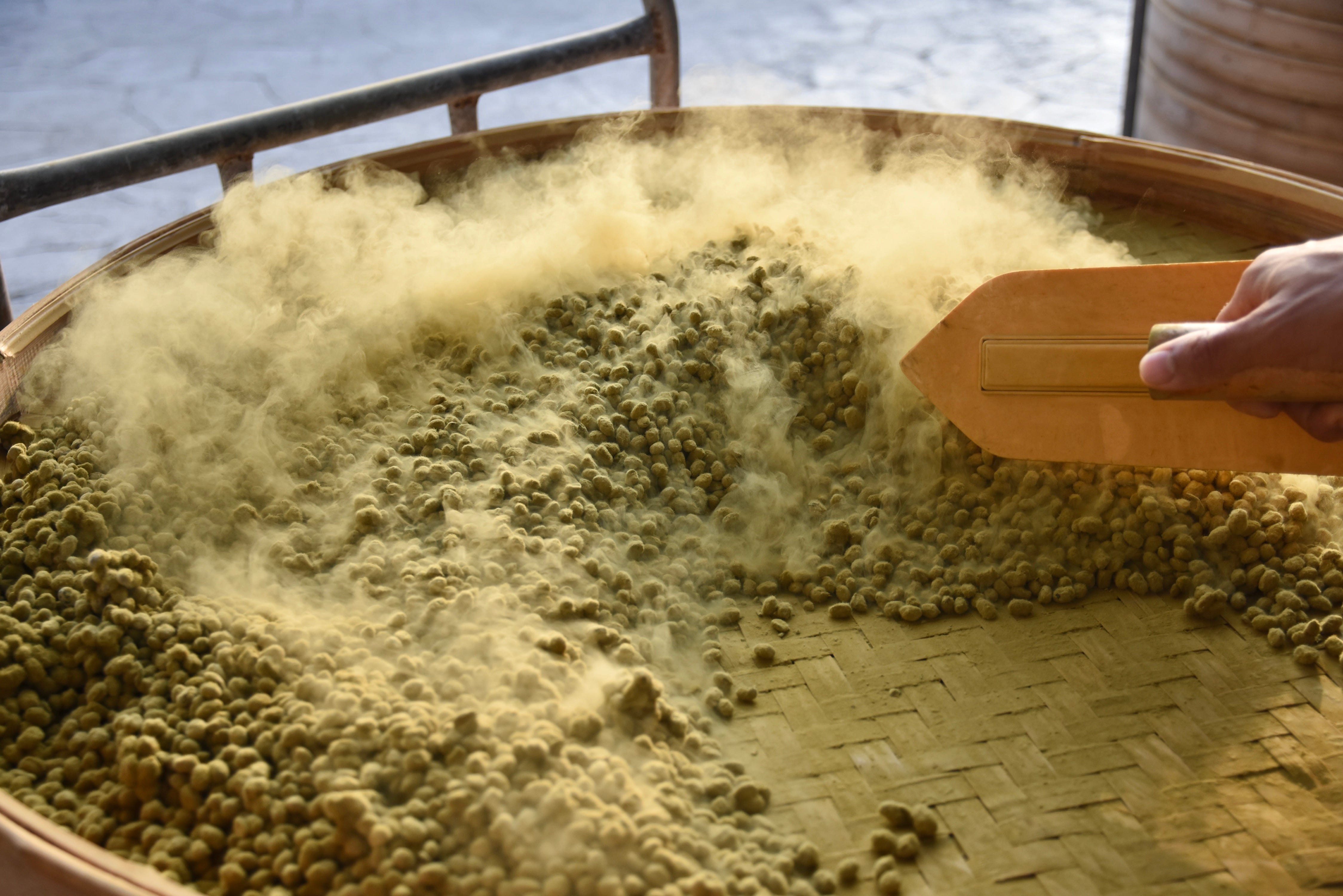 The brewers set aside a portion of the inoculated black soybeans before heading into the soy sauce production process. This portion ages and cures for another year or so, before transforming into their fullest fermented black bean flavor.